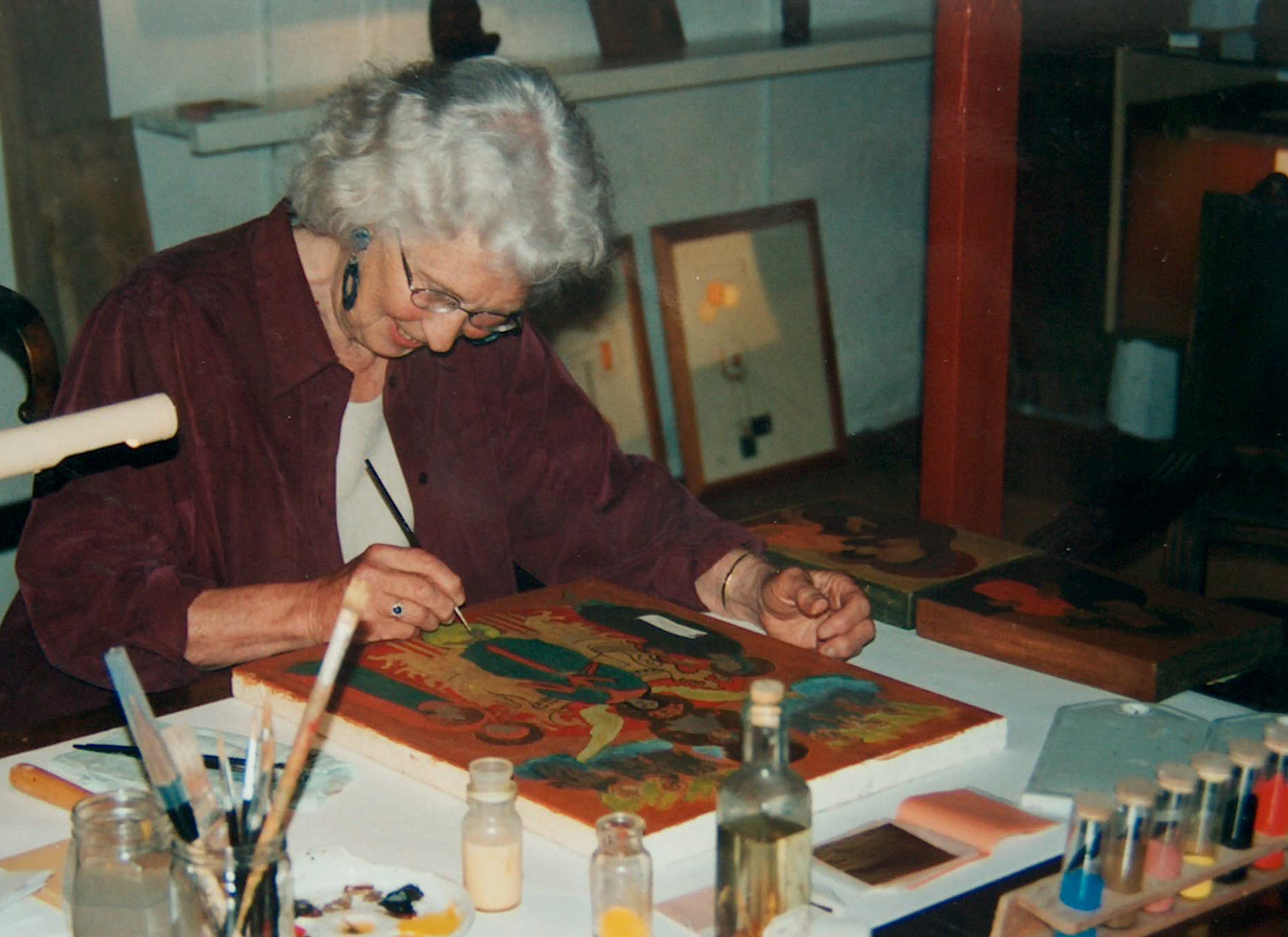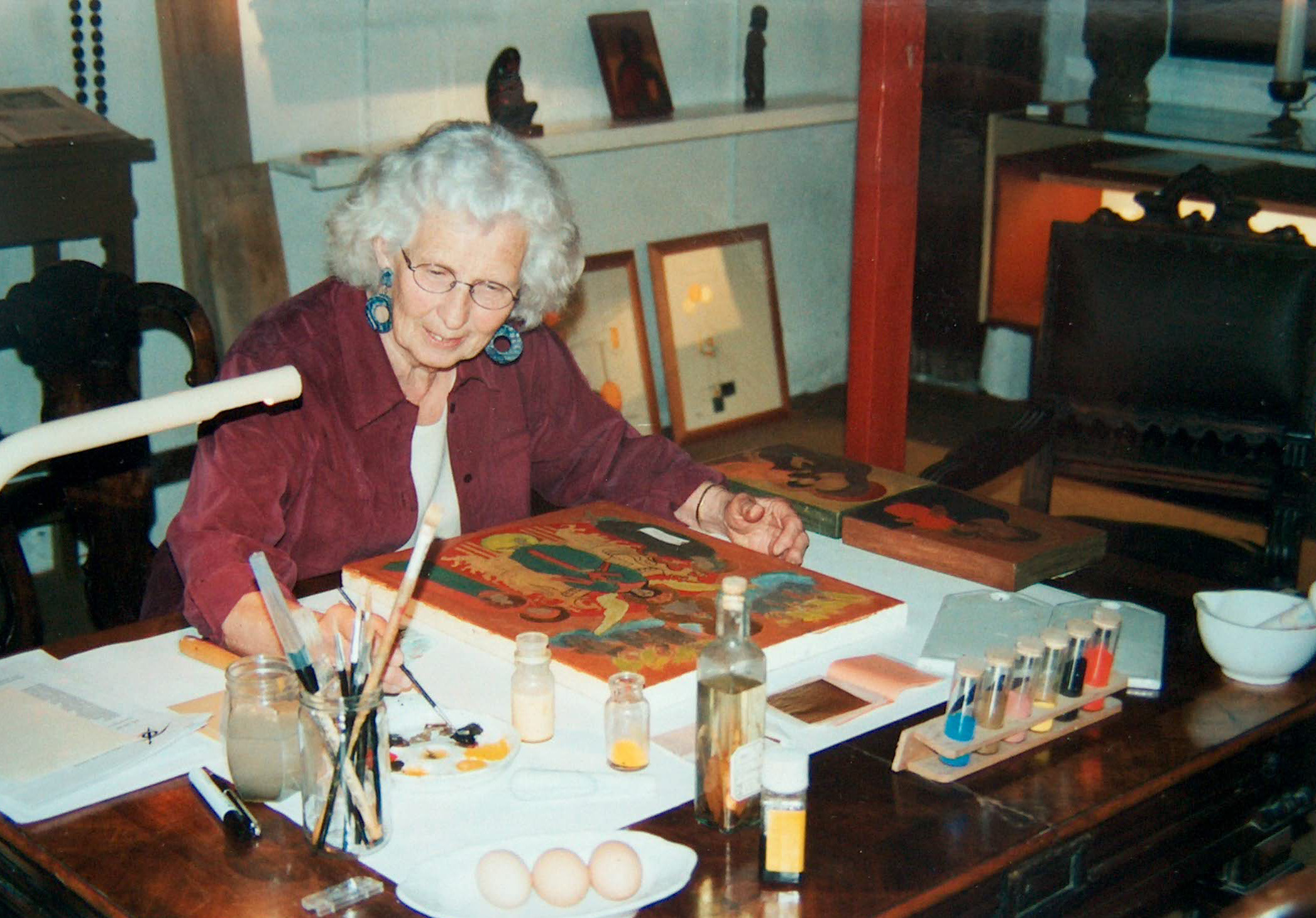 Restaureert en schildert iconen volgens de oude Russische werkwijze.
